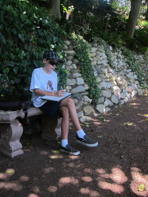 Ethan’s art includes painting and mixed medium. He also enjoys building structures. He effortlessly draws in 3D perspective and can visualize objects from different angles. In an effort to share his art, Ethan had published a monthly newsletter and works with children’s charities in Los Angeles to raise money by donating his art. Ethan is now 16 years old and resides in Los Angeles, California with his parents and his three dogs – his two beloved Labrador Retrievers named Panther and Cocoa, and his one Lab-Shepherd Mix named Riley Cyrus. In addition to his artistic endeavors, Ethan enjoys alternative rock music, plays guitar and bass, loves airplanes, and rides roller coasters all over the world!
